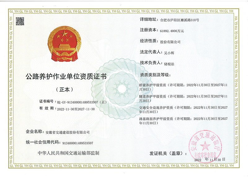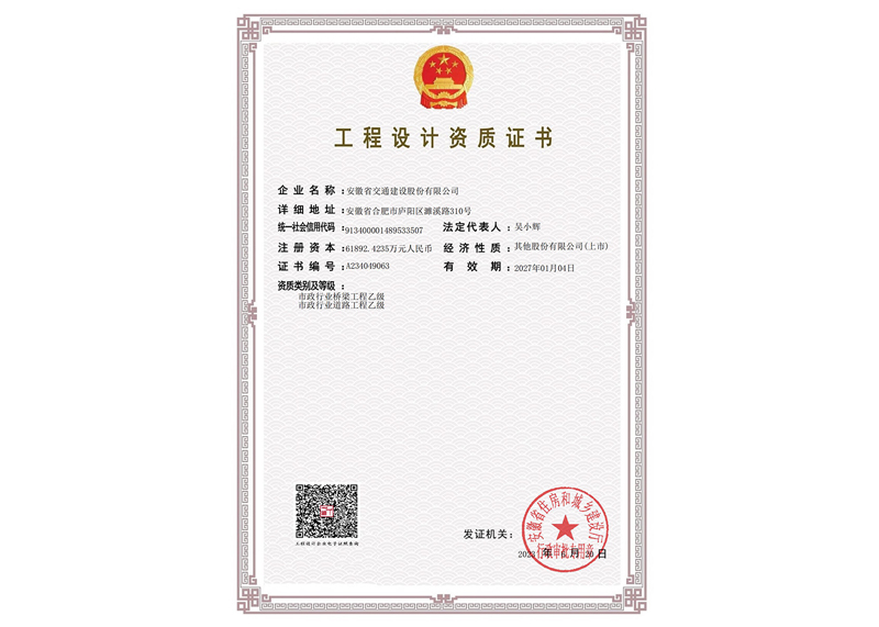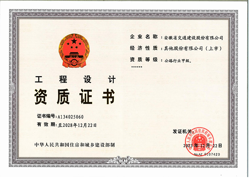 工程設計公路行業(yè)甲級(住建部發(fā))