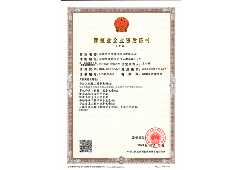 建筑業(yè)企業(yè)資質證書(住建部發(fā))