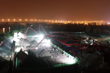 5月12日晚9時(shí),安徽省交通建設(shè)股份有限公司廣德路項(xiàng)目8號承臺(tái)大體積混凝土首層澆筑順利完成。