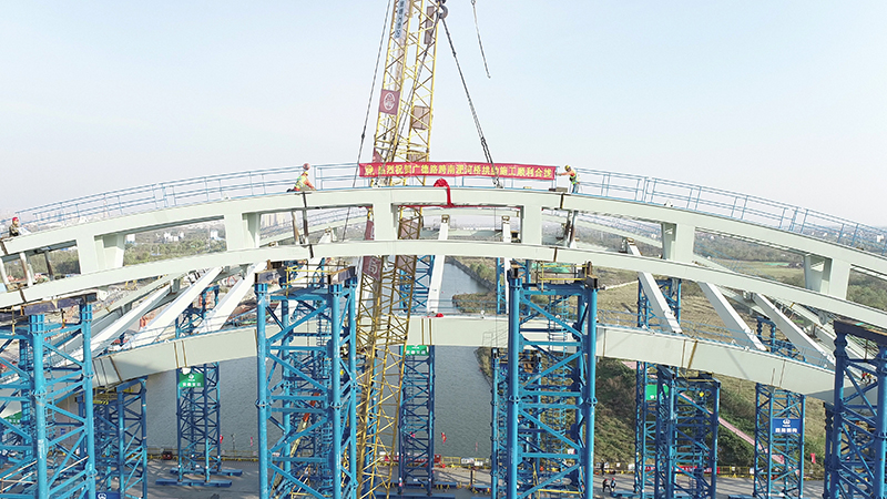 11月11日,隨著最后一段拱肋緩緩吊裝至合龍位置,安徽交建承建的廣德路項目跨南淝河大橋拱肋邊拱順利合龍。至此主橋三拱吊裝施工全部完成,同時為廣德路跨南淝河大橋通車打下堅實基礎(chǔ)。