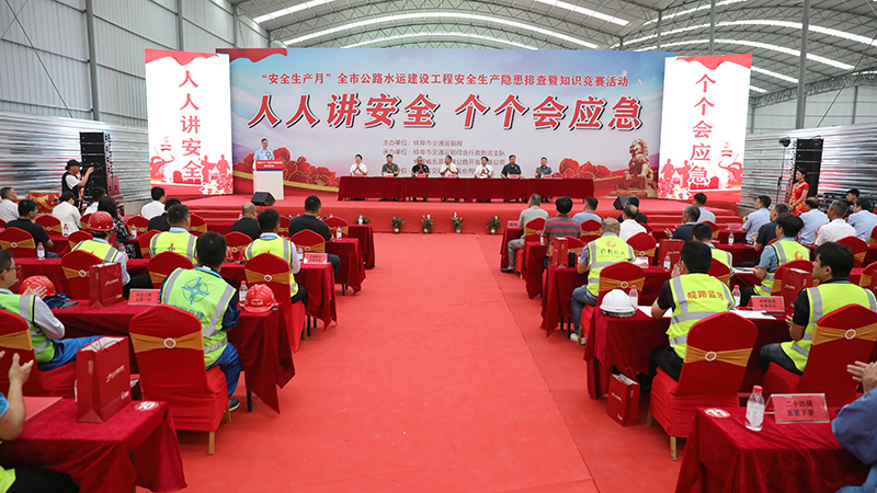 6月19日,由蚌埠市交通運(yùn)輸局主辦,蚌埠市交通運(yùn)輸綜合行政執(zhí)法支隊(duì)和安徽省五蒙高速公路開發(fā)有限公司承辦,安徽省交通建設(shè)股份有限公司協(xié)辦的“安全生產(chǎn)月”蚌埠市公路水運(yùn)建設(shè)工程安全生產(chǎn)隱患排查暨安全知識(shí)競(jìng)賽活動(dòng),在五蒙高速公路04標(biāo)拌和站隆重舉行。