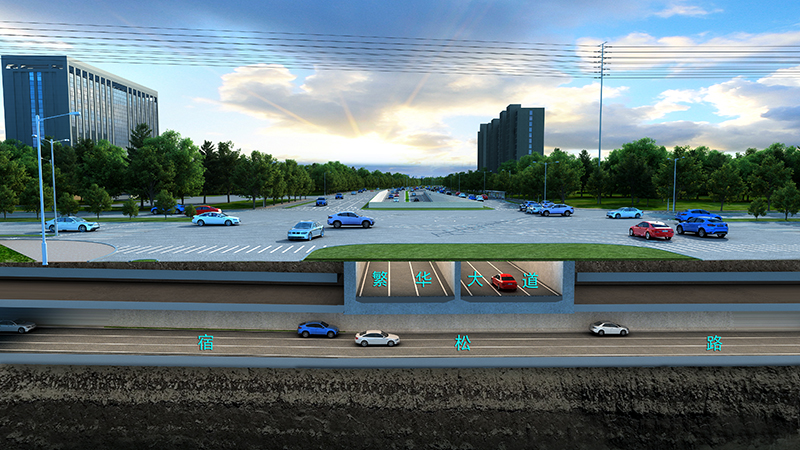 宿松路2標(biāo)全長(zhǎng)2815m,北起繞城高速,下穿壩下路、繁華大道、軒轅路,上跨花園大道、南至慈光路。宿繁交口新建雙層下穿隧道,宿松路隧道位于負(fù)二層,長(zhǎng)1250m,繁華大道隧道位于負(fù)一層,長(zhǎng)349m。新建花園大道跨線橋一座,長(zhǎng)420m;同時(shí),新建壩下路、智能科技園人行天橋2座。