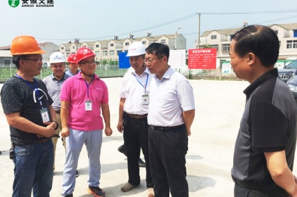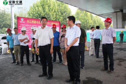 7月18日,安徽省交通控股集團總經(jīng)理錢東升、建管處處長蘇新國、項目辦主任鄒正明等領(lǐng)導(dǎo)一行蒞臨安徽交建滁淮高速定長段路面一標項目部進行檢查指導(dǎo)。