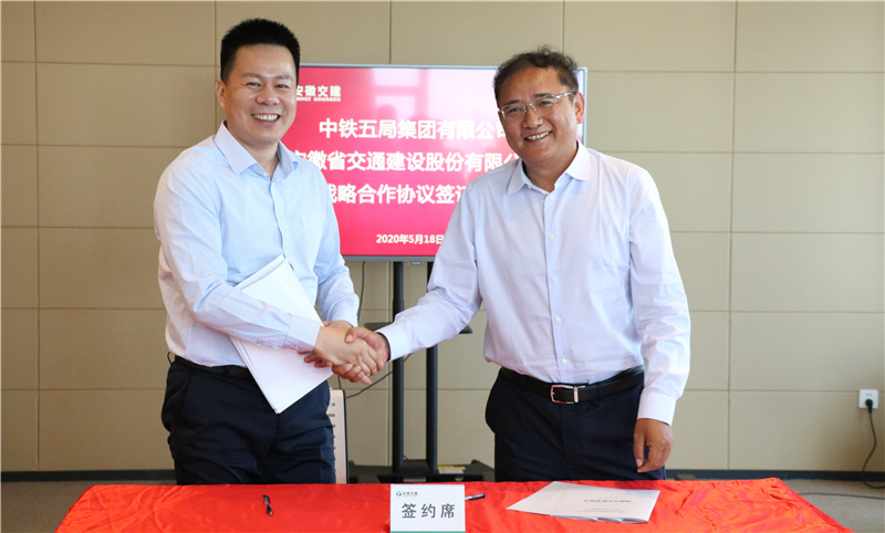 5月18日上午,安徽省交通建設(shè)股份有限公司(股票簡(jiǎn)稱:交建股份,股票代碼:603815)與中鐵五局集團(tuán)有限公司簽署戰(zhàn)略合作協(xié)議。雙方將本著“優(yōu)勢(shì)互補(bǔ)、共同發(fā)展、誠(chéng)信合作、戰(zhàn)略雙贏、互惠互利”的原則,建立全面合作戰(zhàn)略伙伴關(guān)系。中鐵五局集團(tuán)有限公司華東區(qū)域指揮部常務(wù)副指揮長(zhǎng)趙文軍,安徽省交通建設(shè)股份有限公司總裁彭小毛等出席了簽約儀式。