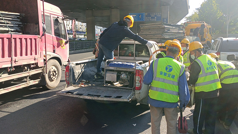 10月22日,因經(jīng)開區(qū)疫情防控要求,需連夜對(duì)始信路以東、紫云路以南、臥云路以北、天都路以西區(qū)域進(jìn)行封閉。在接到經(jīng)開區(qū)管委會(huì)的消息后,安徽交建宿松路2標(biāo)、7標(biāo)項(xiàng)目迅速響應(yīng),立即組織人員、車輛設(shè)備及圍擋材料趕赴現(xiàn)場(chǎng),經(jīng)過一夜奮戰(zhàn),前后出動(dòng)人員30余人次,應(yīng)急車輛7余臺(tái)次,順利完成封閉圍擋的安裝工作。